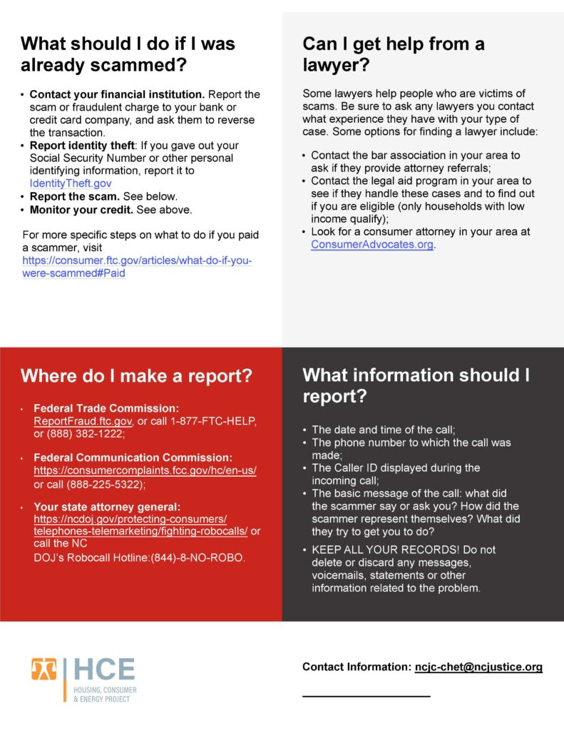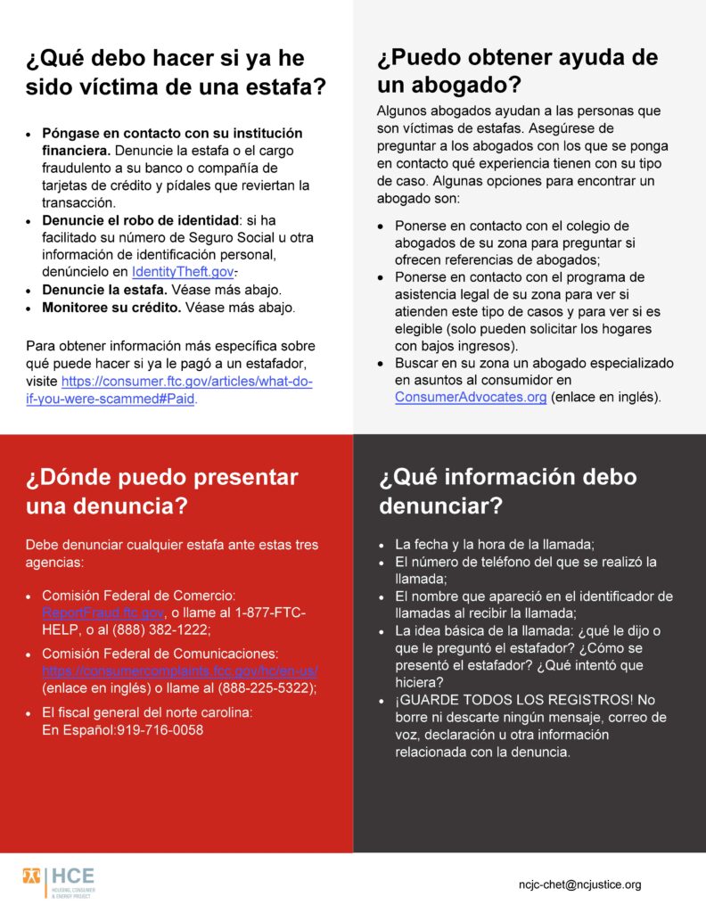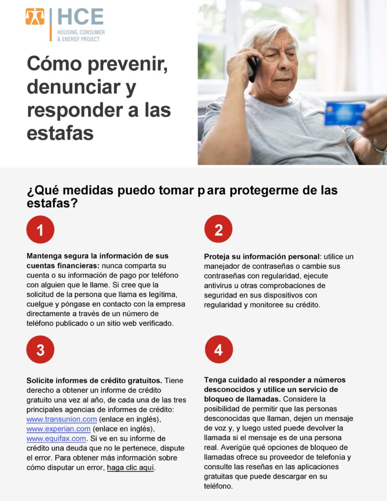 The following document provides tools on how to avoid being scammed, and what to do if you become a victim of fraud. The Spanish version of the document can be found below.